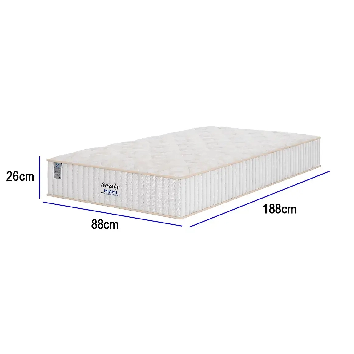 Colchão Miami Solteiro 26x188x88cm com Molas Ensacadas Sealy