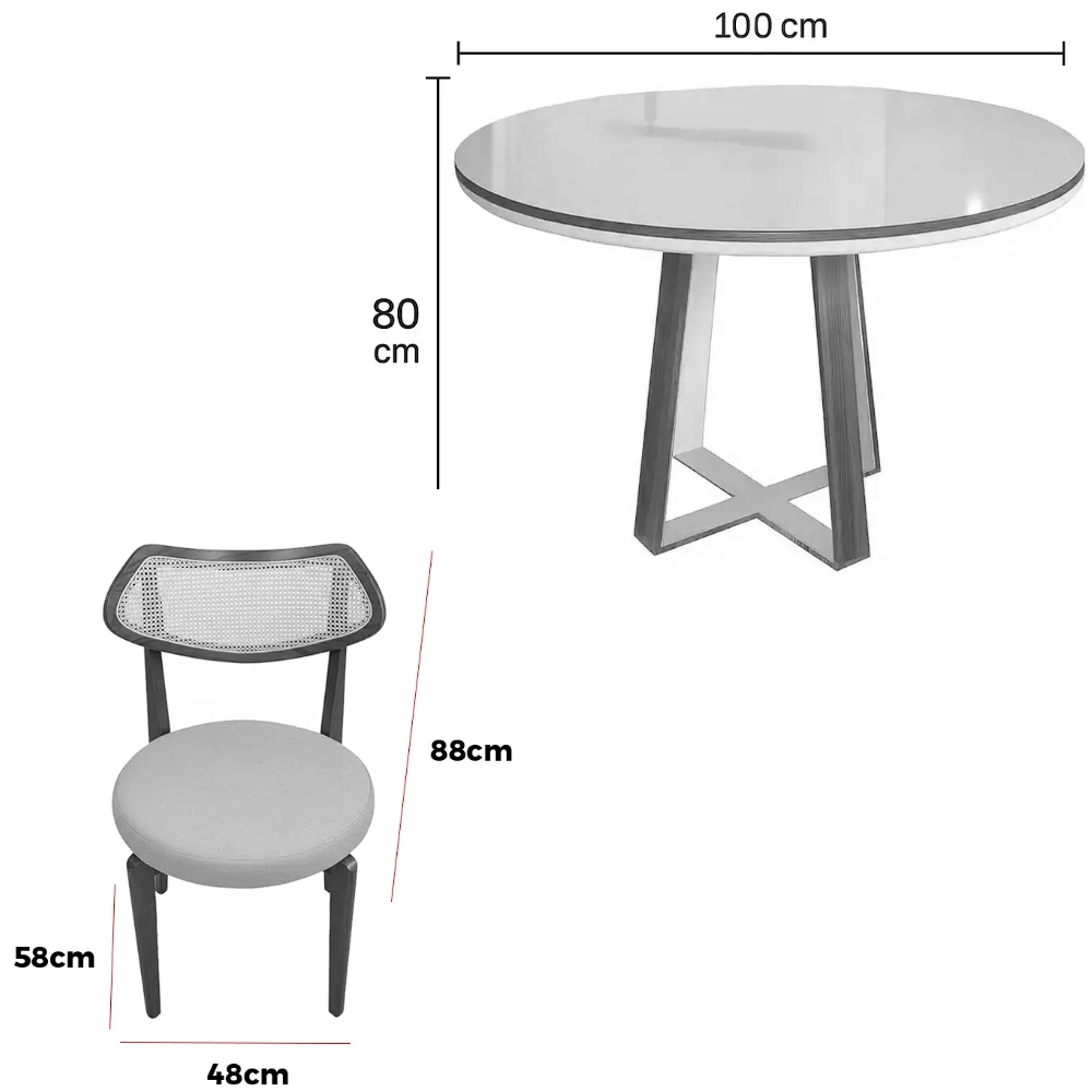 Mesa de Jantar Atlanta 100cm Redonda com Vidro e 4 Cadeiras Athenas em Linho |