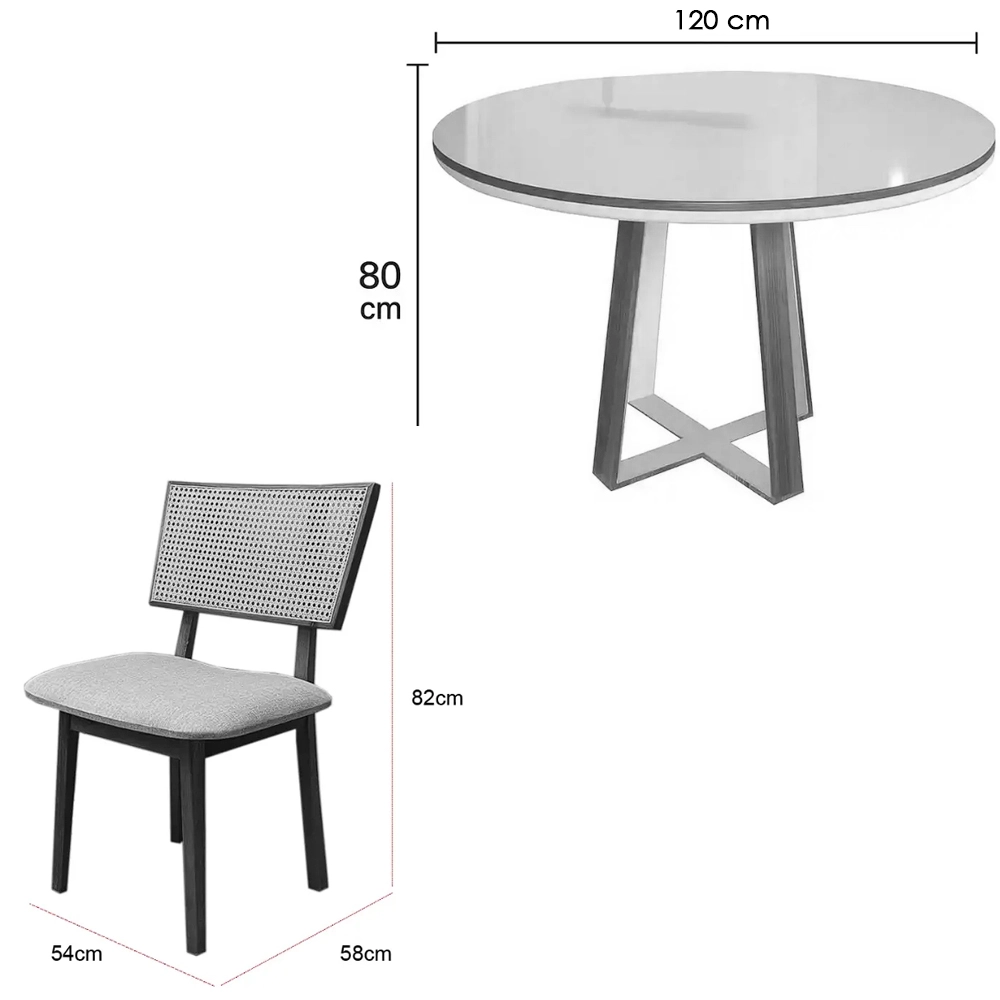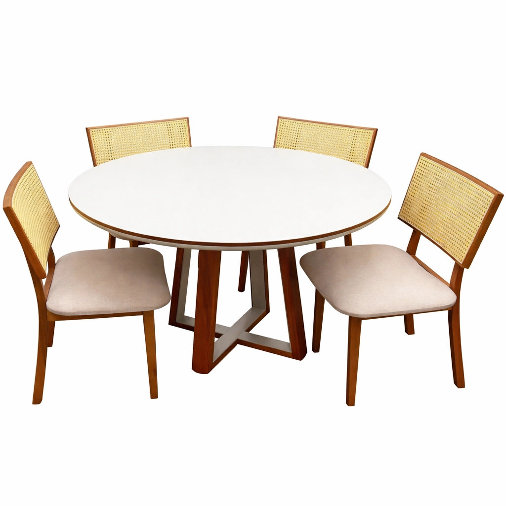 Mesa de Jantar Atlanta 120cm Redonda com Vidro e 4 Cadeiras Diamante em Linho |
