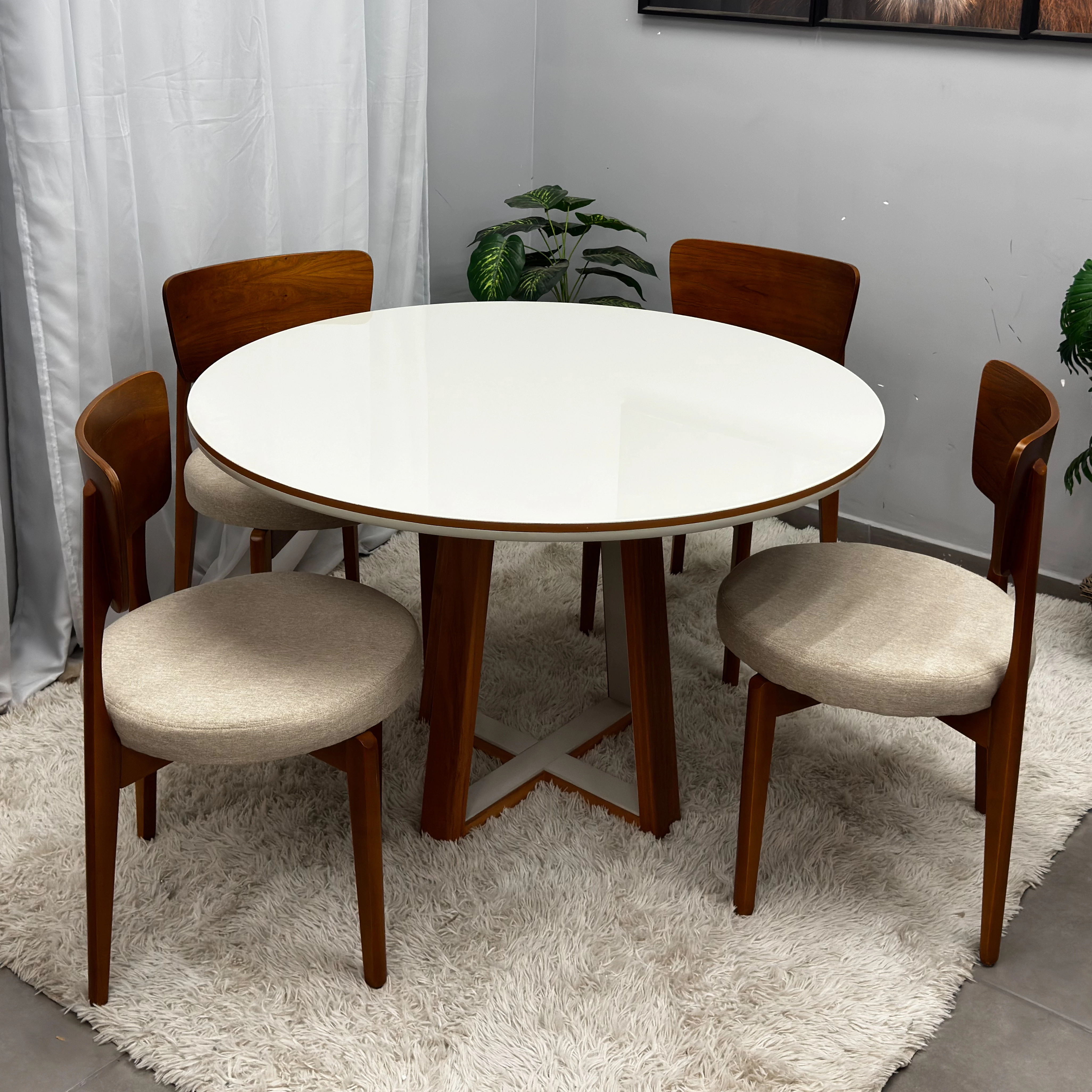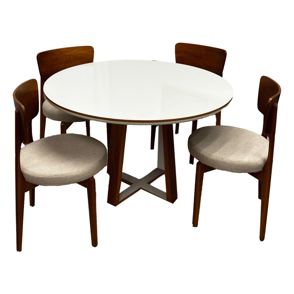 Mesa de Jantar Atlanta 120cm Redonda com Vidro e 4 Cadeiras Maldivas em Linho |