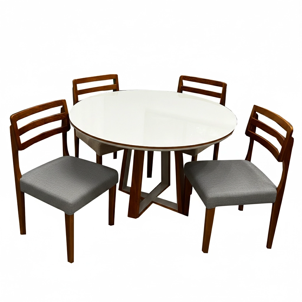Mesa de Jantar Atlanta 120cm Redonda com Vidro e 4 Cadeiras Turquia em Linho Madeira Minas Plac