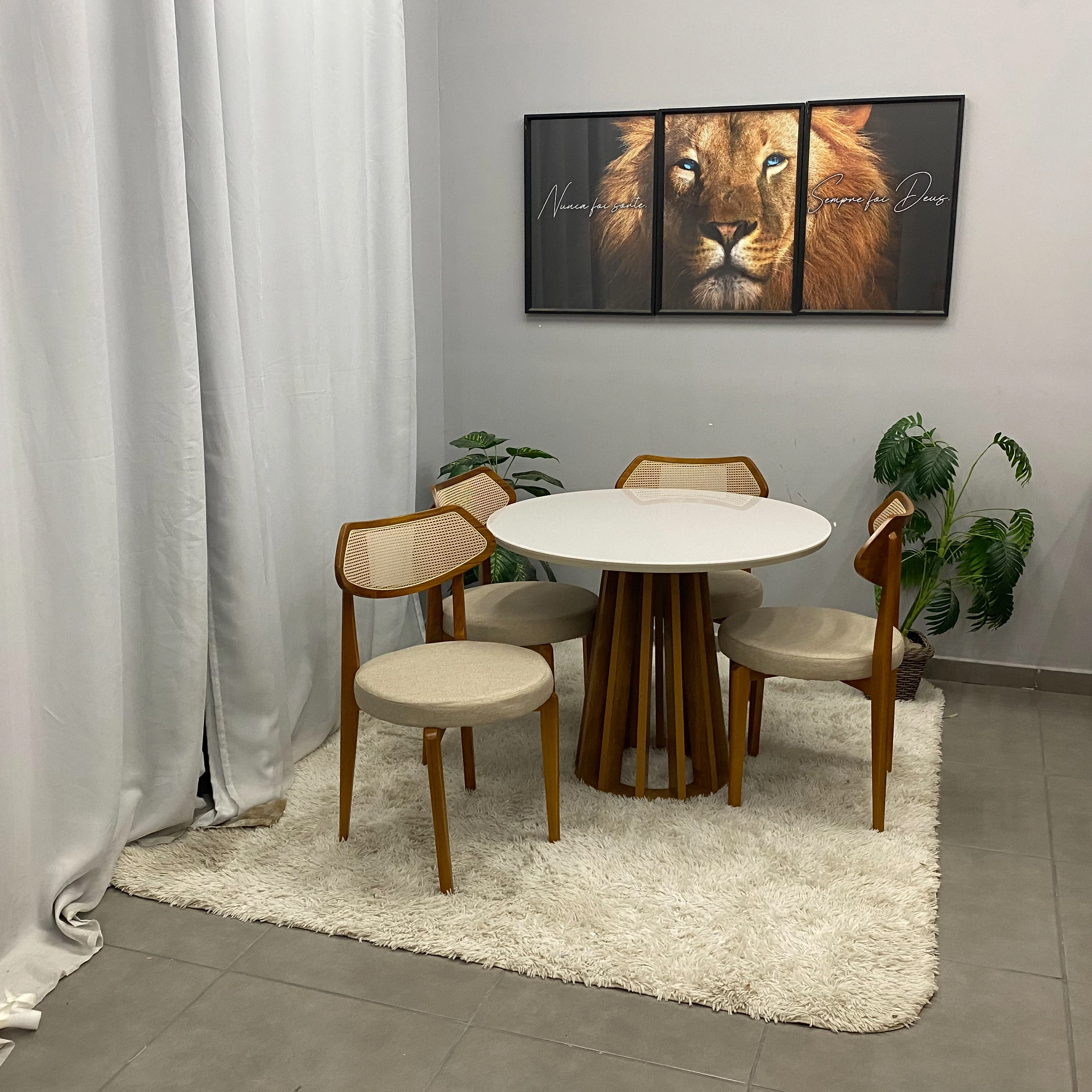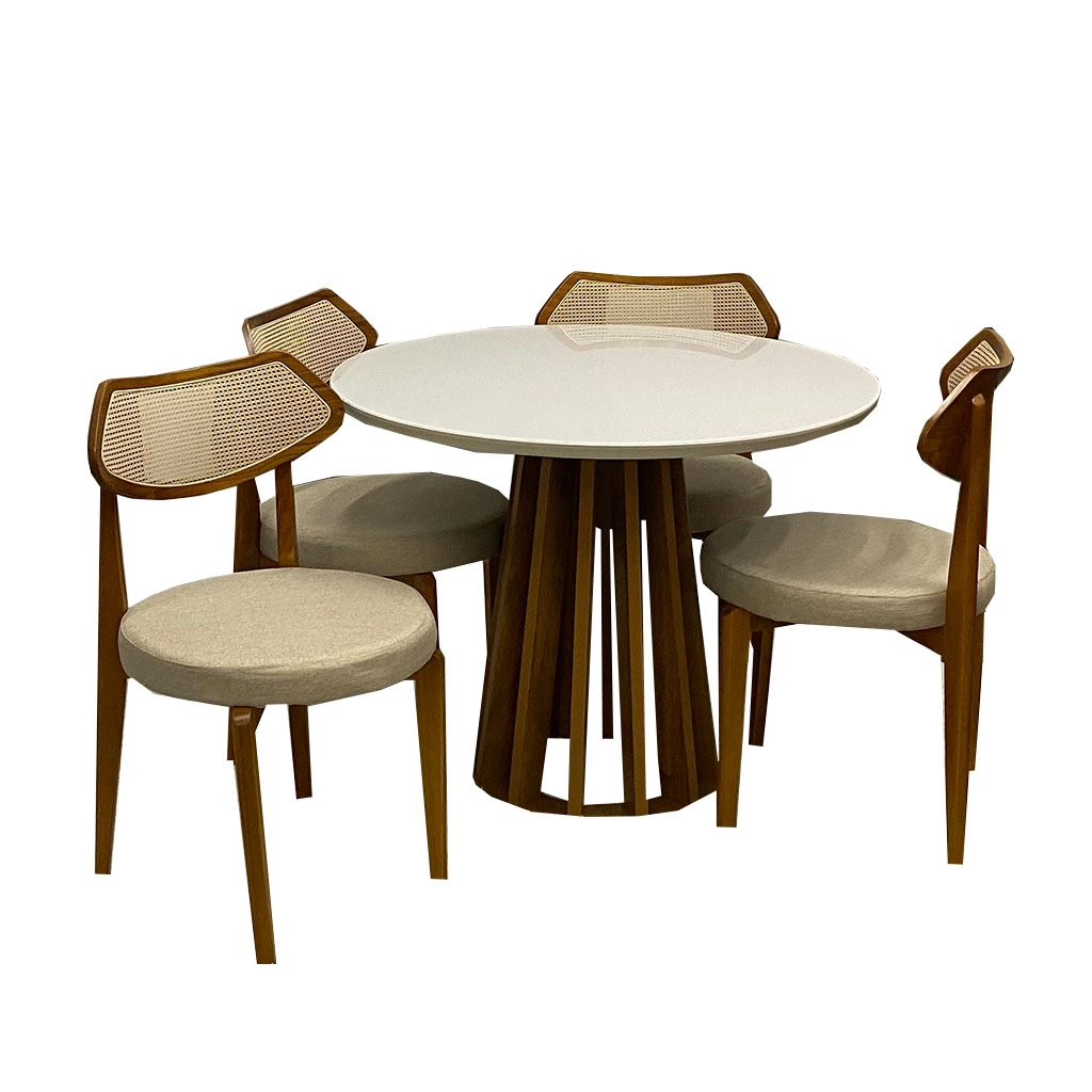 Mesa de Jantar Berlim 100cm Redonda com Vidro e 4 Cadeiras Athenas em Linho |