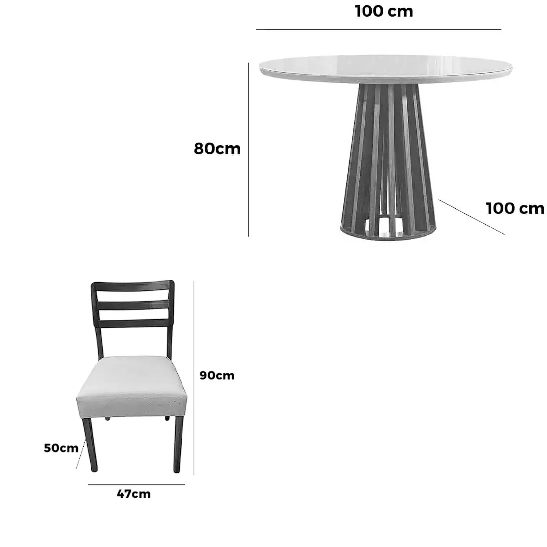 Mesa de Jantar Berlim 100cm Redonda com Vidro e 4 Cadeiras Turquia em Linho |