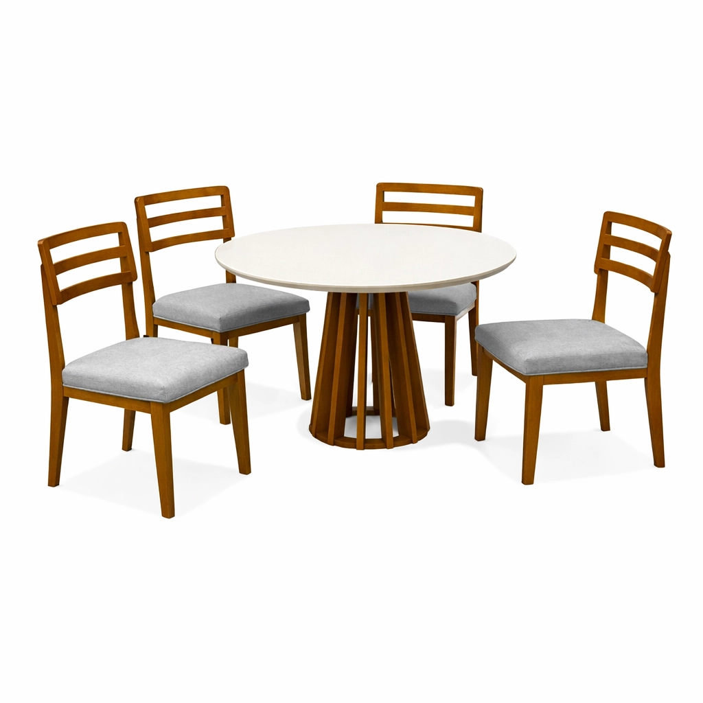 Mesa de Jantar Berlim 100cm Redonda com Vidro e 4 Cadeiras Turquia em Linho Madeira Cel Móveis
