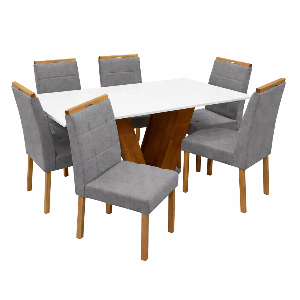 O conjunto acompanha 6 cadeiras, projetadas para proporcionar uma experiência de máximo conforto. Combinando robustez e sofisticação, este conjunto apresenta um acabamento refinado que harmoniza com diversos estilos de decoração, do clássico ao contemporâneo. É a peça central que faltava para renovar seu ambiente com qualidade superior e um visual impecável que impressiona as visitas.