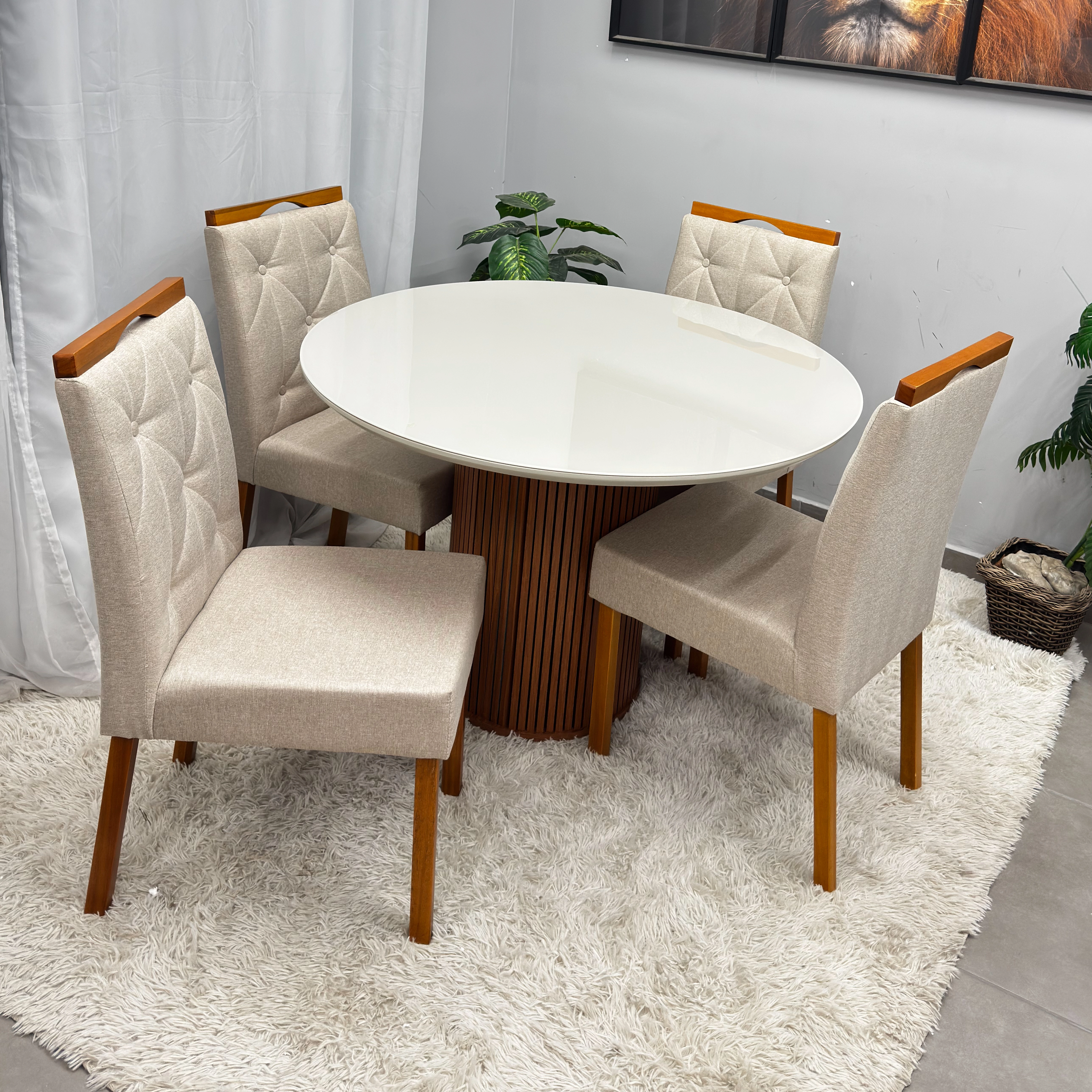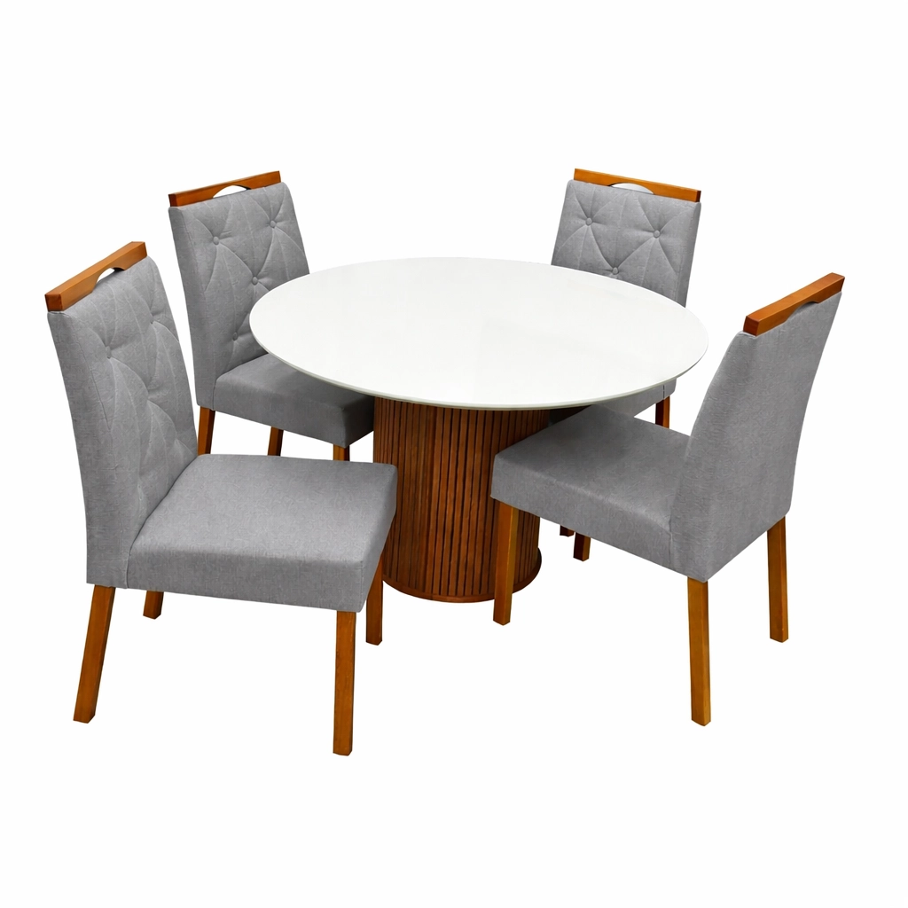 As quatro cadeiras elevam a experiência gastronômica através de uma ergonomia cuidadosamente planejada e luxuosa. Com uma estrutura reforçada, esse conjunto é a escolha definitiva para quem não abre mão de um design atemporal e de alta qualidade técnica em seu lar.